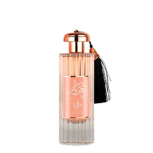 Durrat Al Aroos comienza con una mezcla suave de almizcle blanco y aceite de cipriol, creando una base floral y terrosa. A medida que la fragancia evoluciona, las notas del corazón revelan una fusión cálida y especiada de vainilla, cardamomo y azafrán, lo que añade profundidad y atractivo. Finalmente, las notas de fondo de frijol tonka y madera de guaiac aportan una dimensión sensual y sofisticada, dejando una impresión duradera de lujo refinado. Esta fragancia ofrece una experiencia olfativa cautivadora que evoca elegancia y sofisticación.
