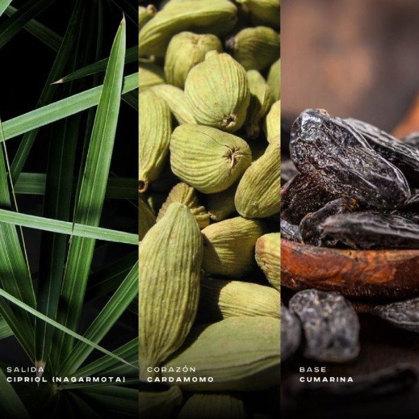 Notas de corazón: vainilla, azafrán y cardamomo.